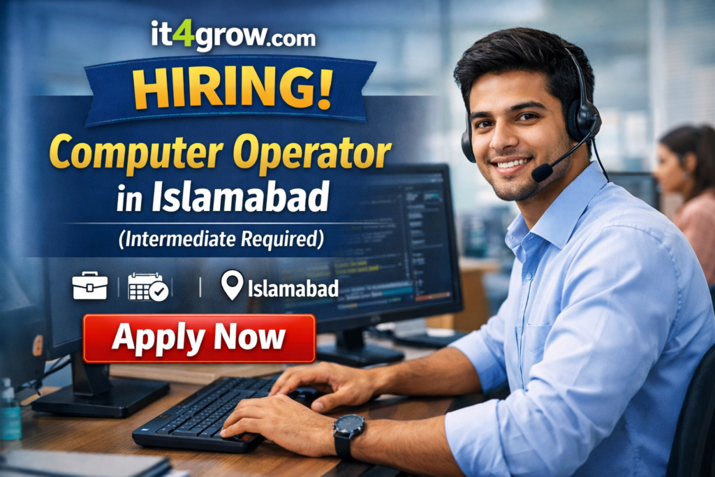 Hiring Computer Operator in Islamabad (Intermediate Required) – Apply Now: